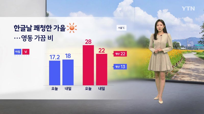 [날씨] 한글날 쾌청한 가을...영동 가끔 비