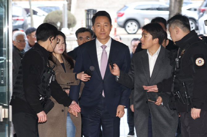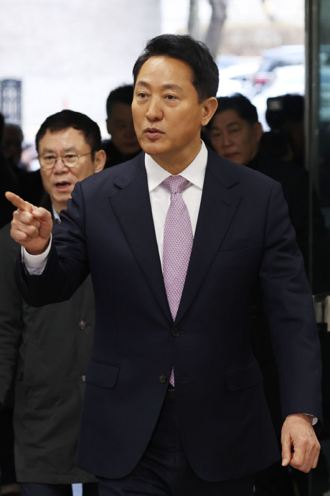 [포토] 법원 들어서는 오세훈 서울시장