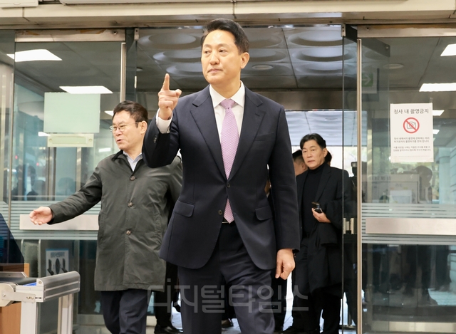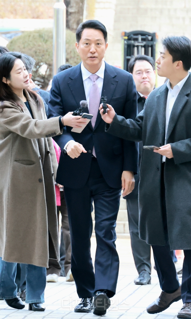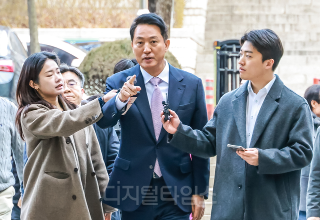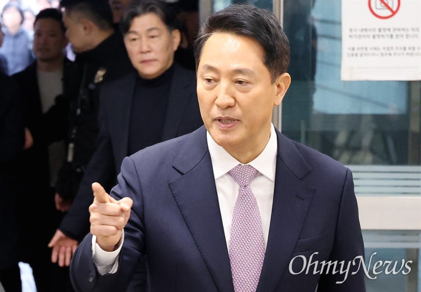 [오마이포토] 오세훈 서울시장, 명태균 여론조사 의혹' 사건 1심 공판 출...