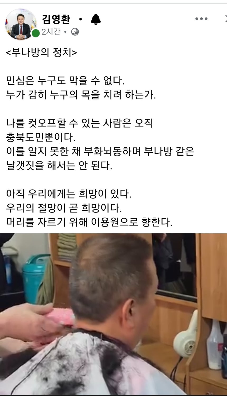 “누가 감히 누구의 목을 치려 하는가”…김영환 충북도지사 ‘삭발’