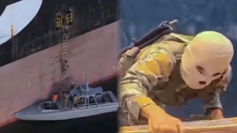 이란 혁명수비대, 복면 쓰고 소총 들고 선박 나포