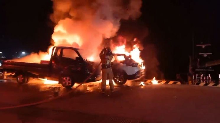완도서 주행 중 SUV 폭발 화재…탑승자 바다 추락
