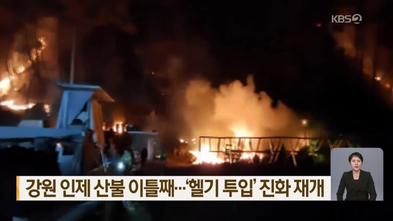 강원 인제 산불 이틀째…‘헬기 투입’ 진화 재개