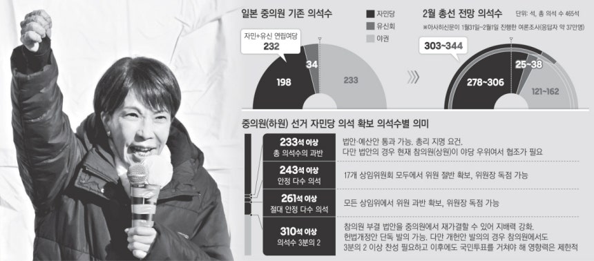 日 다카이치 지지율 고공행진…내달 총선서 자민당 ‘단독 과반’ 이끄나
