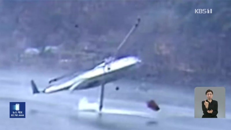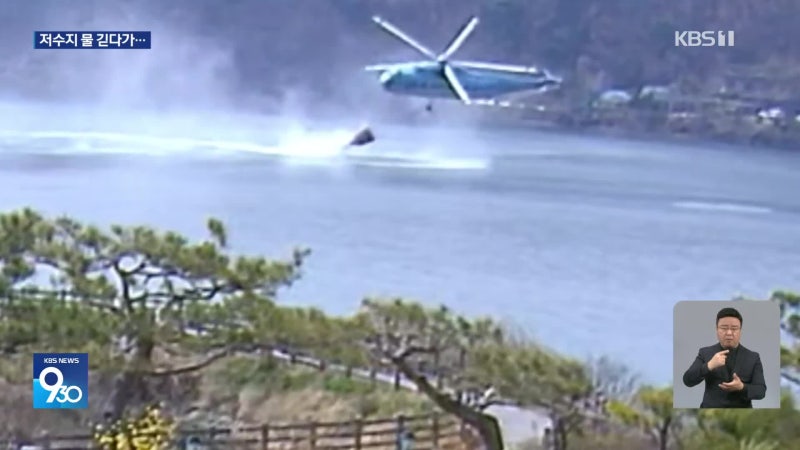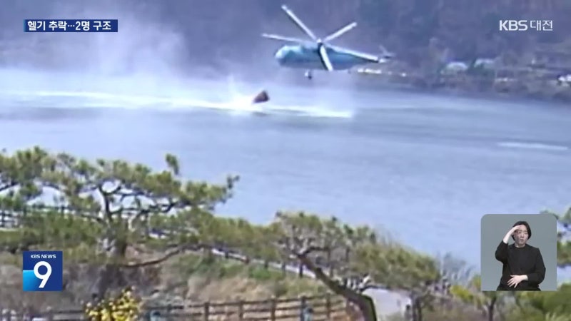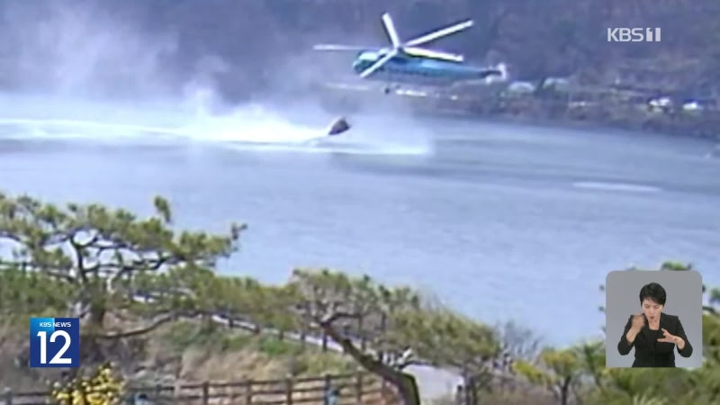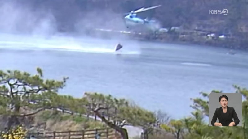 산불진화헬기 물 긷다 추락…조종사 2명 무사 구조