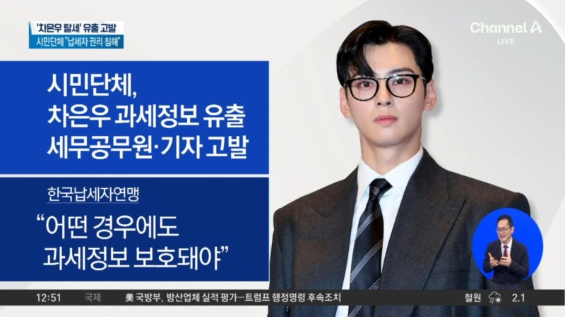 납세자연맹, 차은우 정보 유출 공무원·기자 고발