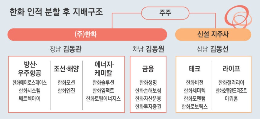 한화 인적분할 ‘교통정리’…장남은 방산, 차남은 금융, 막내 ‘테크·라이프’ 독립