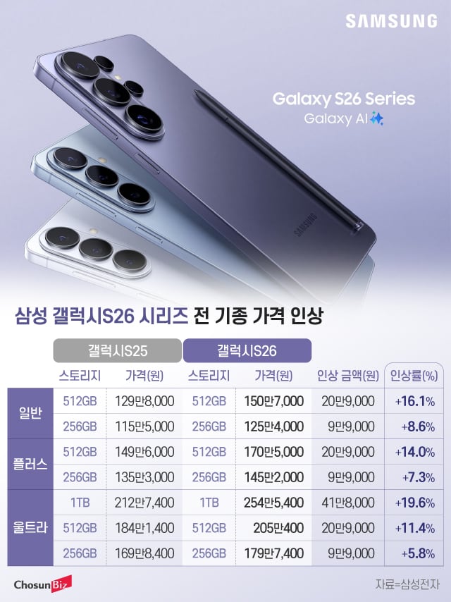더 강력한 AI 기능 무장한 ‘갤럭시S26’… 256GB 전 모델 9만9000원 인상