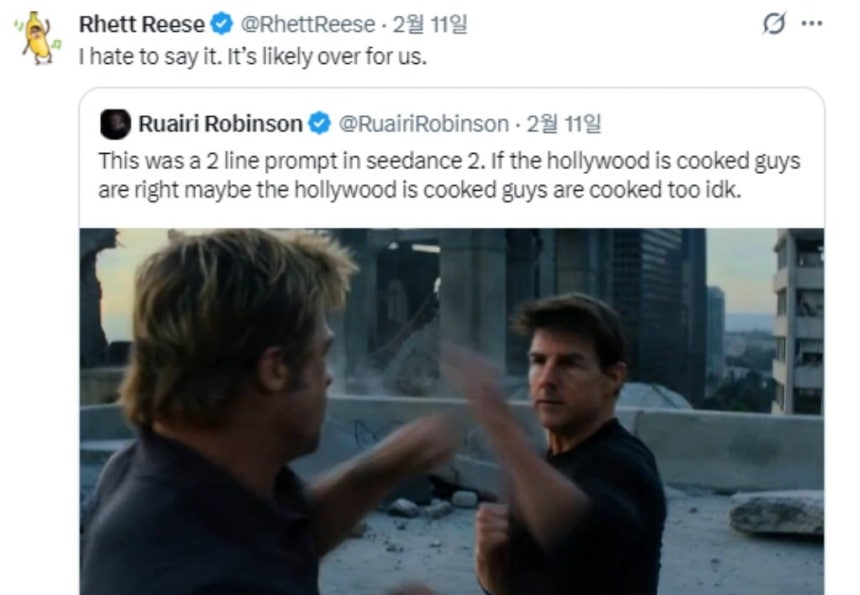 톰 크루즈·브래드 피트 주먹다짐…AI 영상에 할리우드 '충격'
