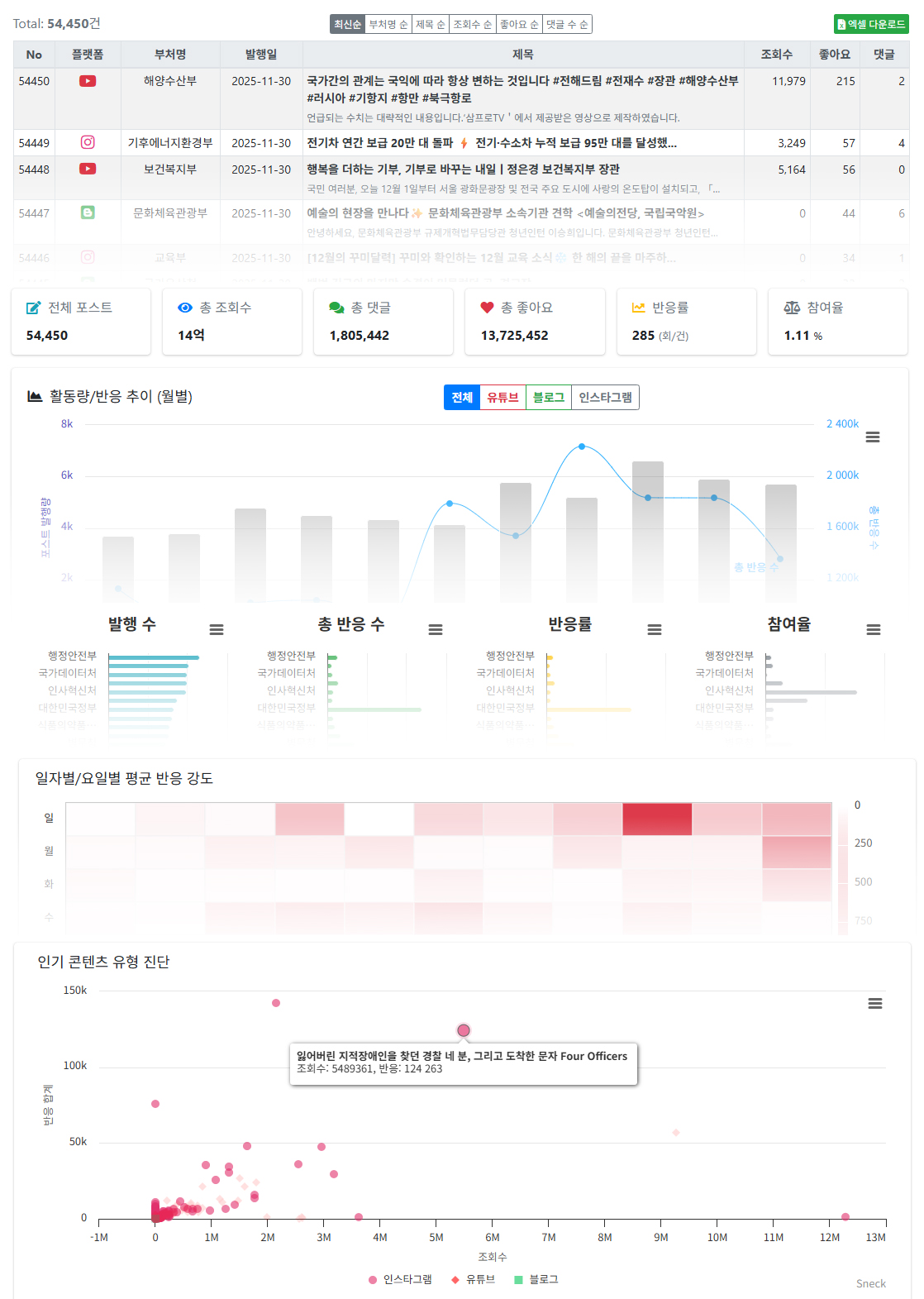 정부부처 SNS 분석 결과 예시